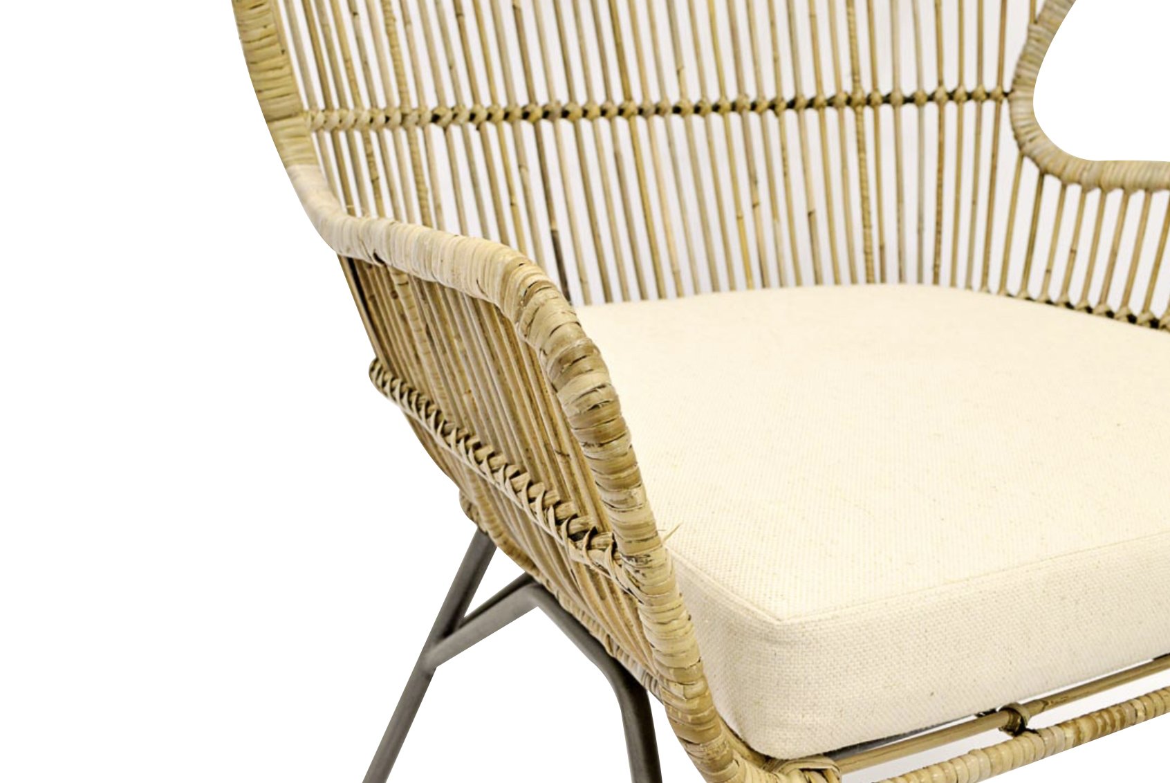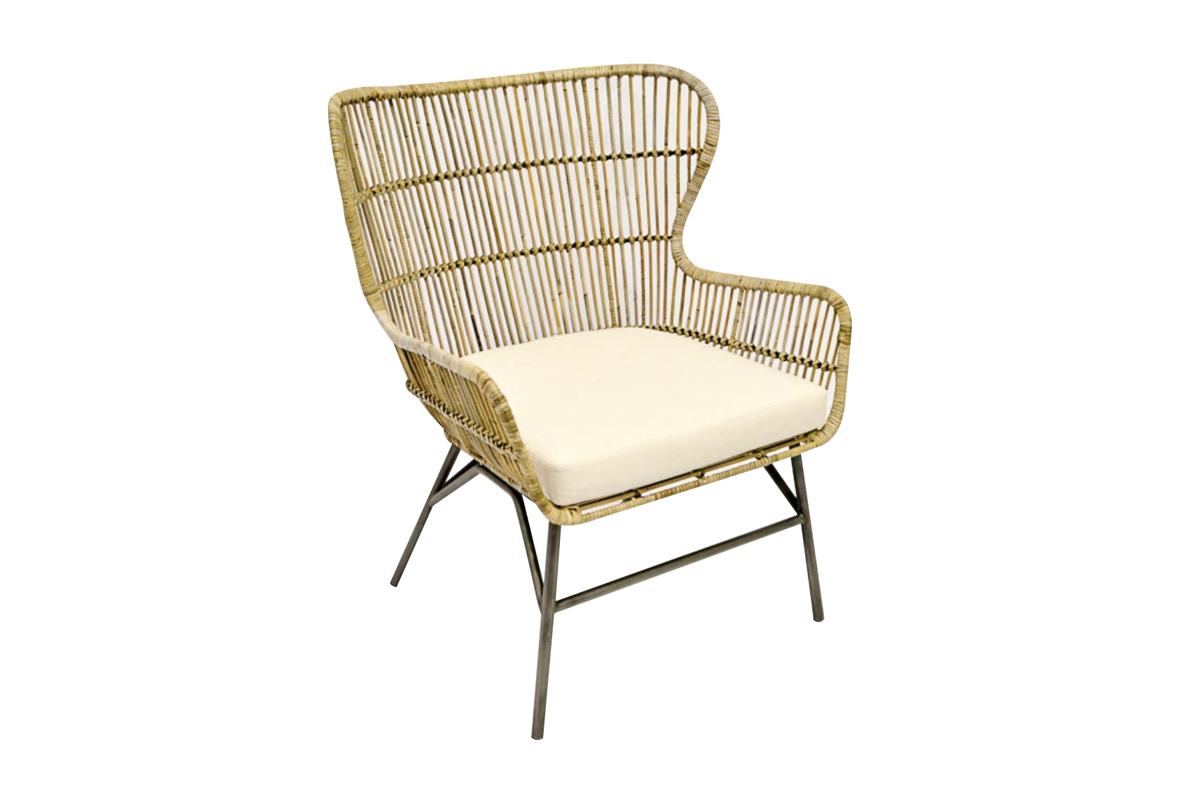 This substantial natural rattan occasional chair is a statement piece and pairs well with a fabric sofa. This chair is not for outdoor use.